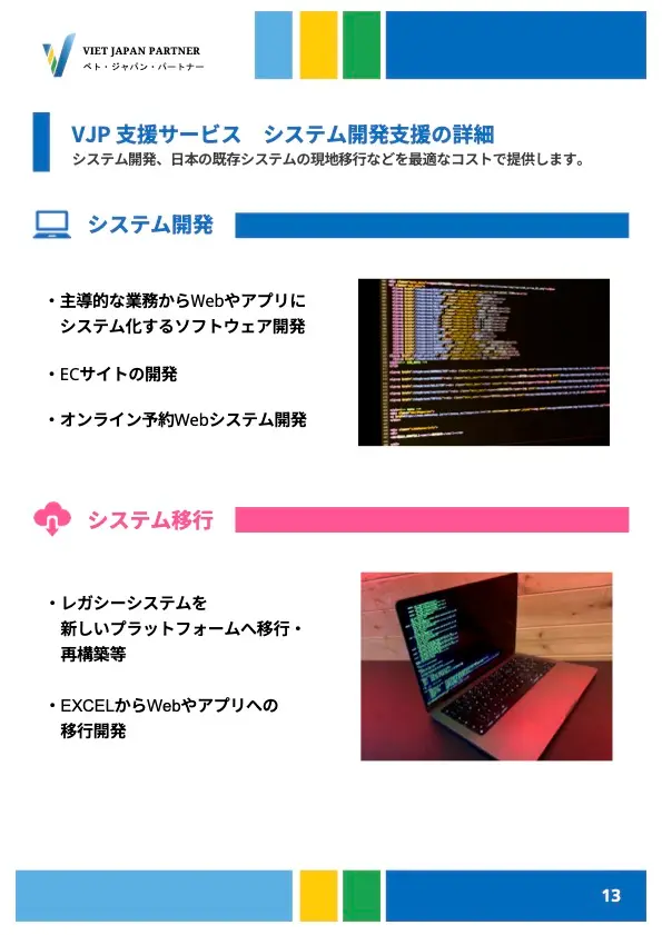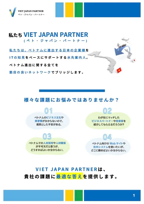 所属会社での業務として、VIET JAPAN PARTNER CO., LTD様の日本企業向けの会社紹介カタログを企画・制作しました。